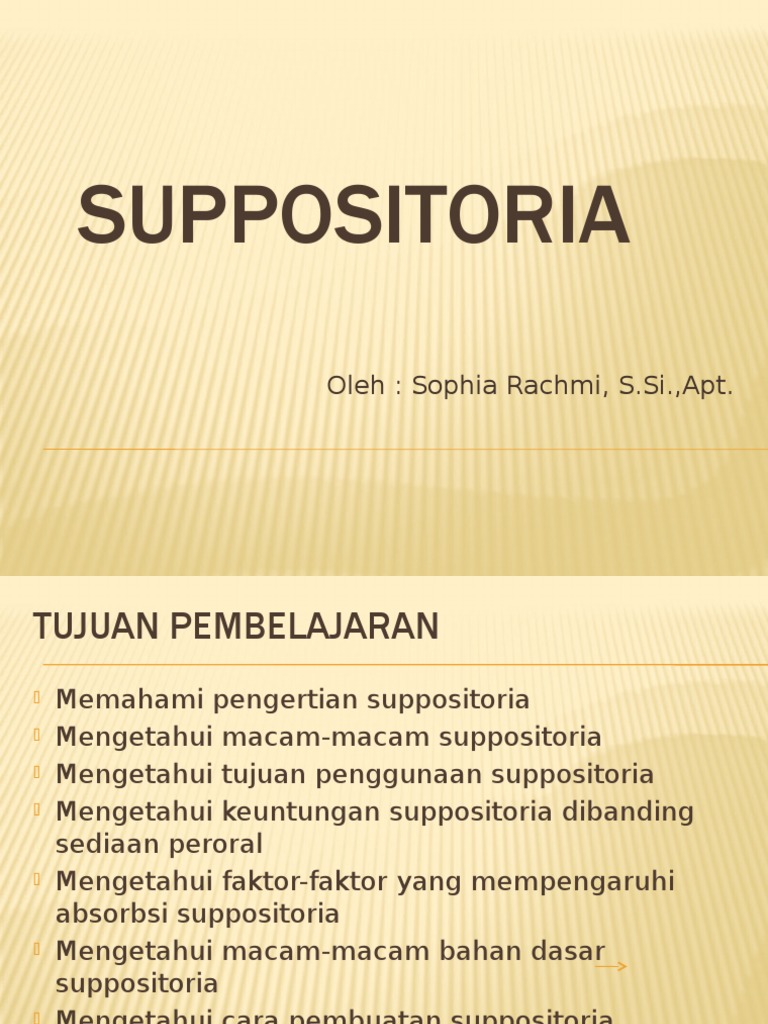 Suppositoria Docx Suppositoria 2 1 Definisi Suppositoria Suppositoria Adalah Sediaan Padat Dalam Berbagai Bobot Dalam Bentuk Yang Diberikan Melalui Course Hero