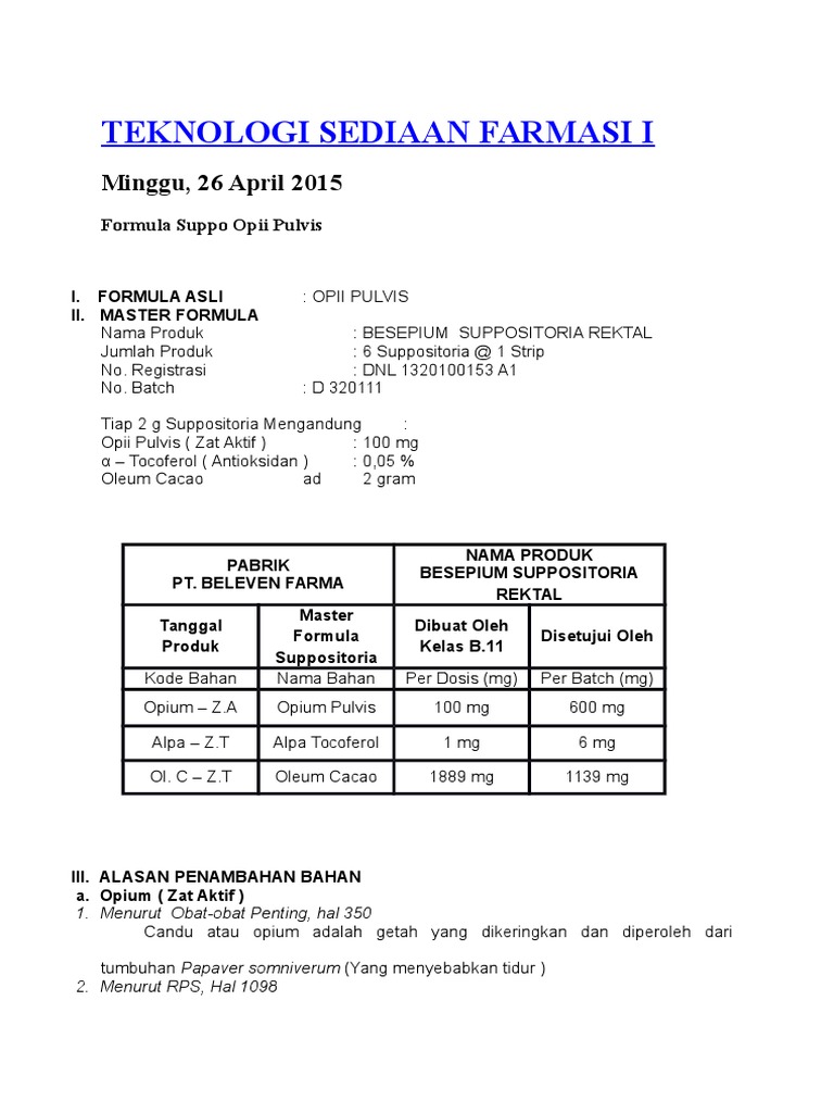 Cacao qs M f suppo dtd No IV Problema basis PEG melunakkan. Pesantren no 48 Tlp.